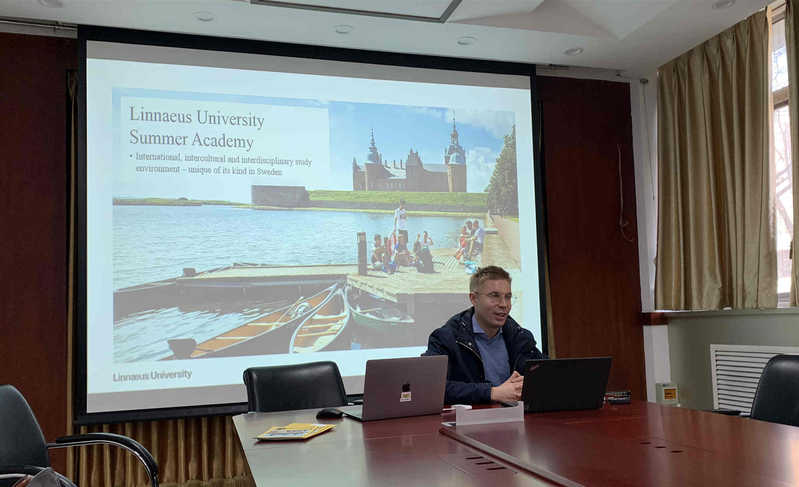 在本次交流中,Henrik介绍了林奈大学的教学、专业设置、国际员工构成、校园环境以及生活福利等各个方面情况。他提到很多优秀的中国员工在瑞典学习期间获得奖学金,超过70%的学费将被减免,希望有更多的同学能够前往林奈大学学习。随后,他面试了6位今年报名暑期项目的同学,并回答了同学们的提问。