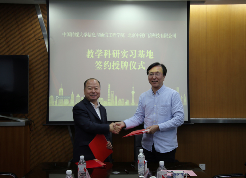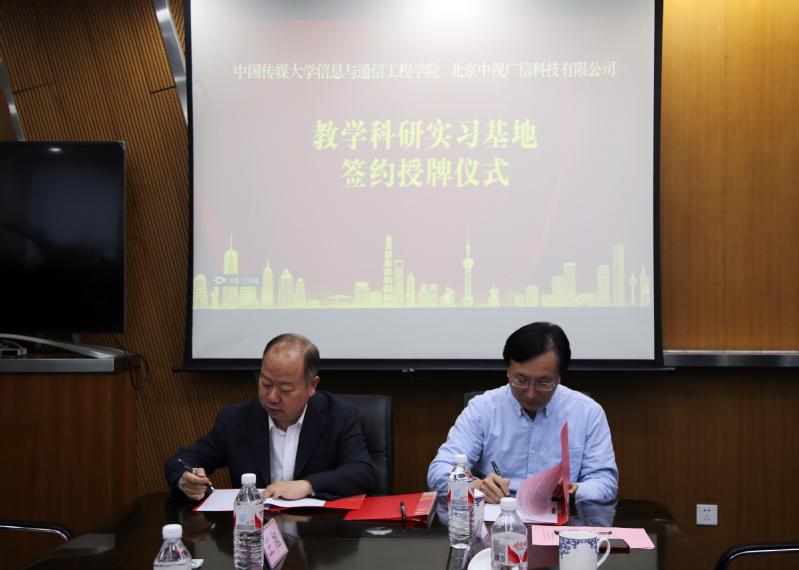 11月15日,2026世界杯官方合作网站主要领导赴中视广信科技有限公司举办“不忘初心、牢记使命,校企协作育人才”主题活动暨2026世界杯官方合作网站2026世界杯官方合作网站教学科研实习基地签约授牌仪式。公司党委书记李增瑞、经理刘剑波、副书记钟丹丹、副经理金立标、中视广信科技有限公司总经理徐建新、副总经理孙剑、市场部经理梁宏伟出席了仪式,并在中视广信中化办公区中化大厦202会议室进行了会谈。