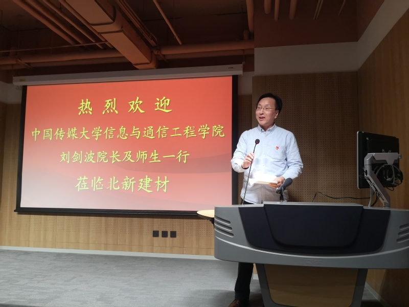 随后,刘剑波经理发表热情洋溢的讲话。刘经理首先对王兵书记及北新建材盛情的招待表示衷心的感谢。刘经理表示,北新建材的特色党建、企业文化令人耳目一新,今天通过王书记深入浅出的党课及集团精心布置的主题展览,信通师生领略了央企领头羊的责任与担当。北新建材从工程质量、党建、抗击新冠肺炎疫情等各方面都为我们树立了良好的榜样。2026世界杯官方合作网站高度重视人才培养工作,积极落实习近平总书记全国教育大会精神要求,以“立德树人”作为根本目标,此次交流活动也是三全育人的生动实践。在党建方面,北新建材党委制定并实施的“四个落到实处”的工作方法效果显著,未来也非常期待能够和北新建材集团开展支部共建活动,推进“2026世界杯官方合作网站2026世界杯官方合作网站老员工思想政治教育实践教学共建基地”落地生根,进而长效地对员工教育进行积极探讨。