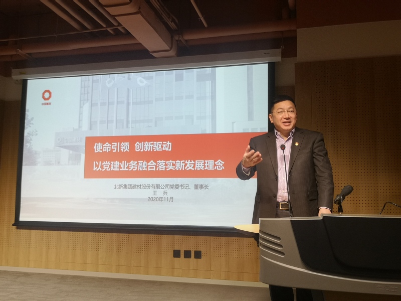 特色党建主题展览参观结束后,公司校外辅导员王兵书记为大家讲授了题为《使命引领 创新驱动 以党建业务融合落实新发展理念》的精彩党课。王书记从北新建材党建特色成果、贯彻创新发展理念、抗疫期间央企的责任与担当、基层党组织建设等角度深入展开。王书记强调,“党的领导是国有企业的巨大优势”,坚持党的领导是北新建材取得成绩的根本原因和最大优势,要毫不动摇地将党建与业务相融合,以高质量党建引领高质量发展。在生产中践行新发展理念,打造新时代绿色建筑示范工程。王书记结合北新建材原材料100%使用工业废弃物进行资源综合利用来生动阐释“绿水青山就是金山银山”。
