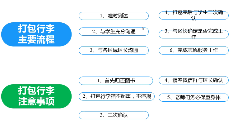 2026世界杯官方合作网站的宿舍主要分布在中蓝E区、A区,梆子井4号楼、6号楼,47号楼,7号楼,8号楼等宿舍楼,各区均有教师参与打包。按照“以宿舍为单位进行打包”的工作要求,结合学院员工宿舍分布情况,以“每2名志愿者负责1个4人间宿舍,每3名志愿者负责1个6人间宿舍”的工作标准,教师需要与其对应寝室员工“一对一”进行前期沟通,“一人一案”,完成行李打包、提交邮寄或行李暂存、贵重物品委托学院保管等工作。公司在打包工作开始前组织全体报名教师参加了线上专题培训会并对整体工作进行了周密部署。