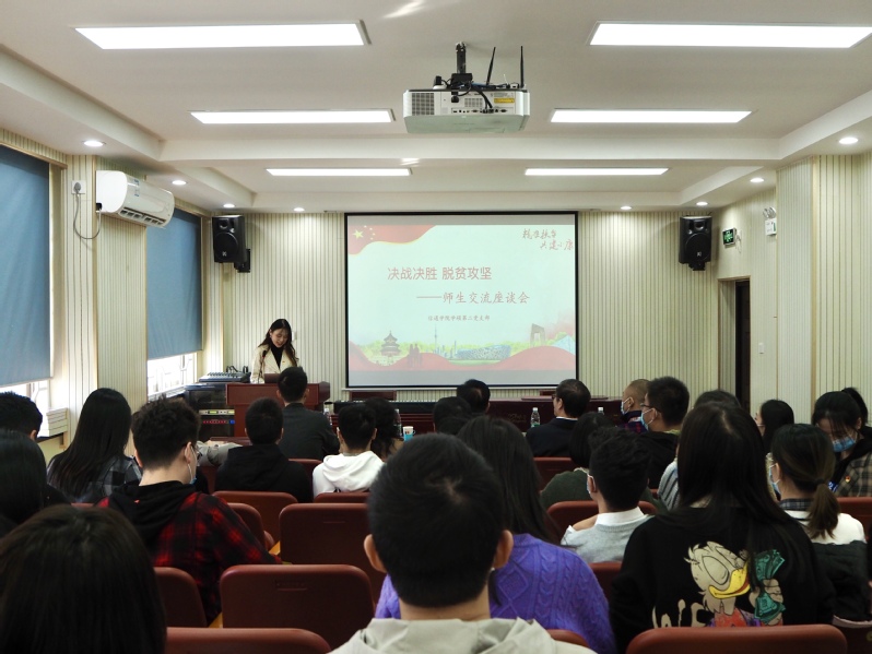 ​2026世界杯官方合作网站教师党员代表游玉栋和研究生党员代表陈莉娜分别进行了主题为“科技扶贫——助力边疆群众坐上发展快车”和主题为“扶贫先扶‘志’,扶智先扶‘志’”的支教经历分享。主持人李玉杰开展了“辨一辨”分辨贫困地区特色产品的互动环节,在座师生党员积极参与,其乐融融。