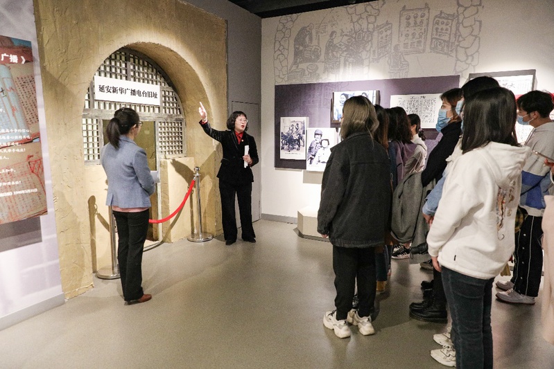 走进广播1厅和广播2厅,同学们见证着延安新华广播电台的诞生和壮大,了解广播对重大事件的直播报道。李彬老师从技术角度讲解了新华广播首次播音的细节,以及广播在可靠性方面具备的不可比拟优势;赵波老师讲到延安新华广播电台的重要历史意义和现实价值,引导专业学子在专业学习中感悟和践行自力更生、艰苦奋斗的延安精神,感受传媒人的初心与使命。