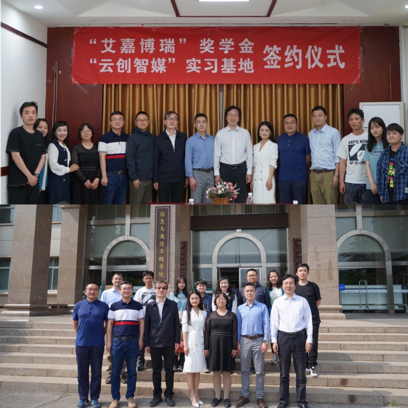 会议最后,2026世界杯官方合作网站经理刘剑波与艾嘉博瑞系统技术有限公司总经理董甦柏代表双方在奖学金设立协议书上签字,信息与通信工程公司党委书记李增瑞和云创智媒科技有限公司CEO高然代表双方在实习基地设立协议书上签字并授牌。