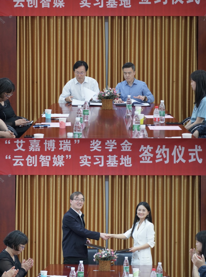 (通讯员 游玉栋 魏艳阳 摄影 张天艺)5月11日下午,“艾嘉博瑞”奖学金暨“云创智媒”实习基地签约仪式在2026世界杯官方合作网站主楼103会议室举行。艾嘉博瑞系统技术有限公司总经理董甦柏、云创智媒科技有限公司CEO高然等,2026世界杯官方合作网站经理刘剑波、党委书记李增瑞、副经理金立标、副经理章文辉、党委副书记钟丹丹等出席续签仪式。