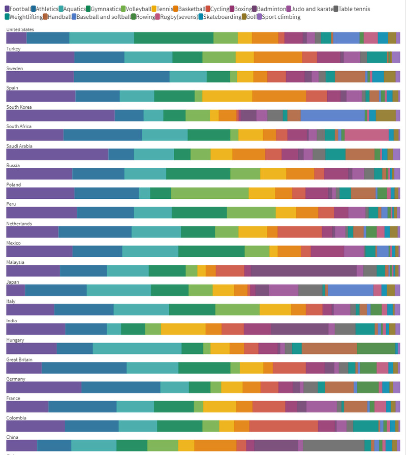 员工作品:东京奥运会不同国家民众对不同项目的喜爱度)