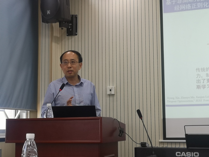 此次前沿课的主题为“基于概率模型表达的深度神经网络优化”,马占宇教授从深度神经网络正则化框架与深度神经网络注意力机制两个方面进行了课程的讲授,与学院师生分享了自己科研团队的研究成果,加深了在场师生对深度神经网络优化技术的认识,拓宽了科研视野。
