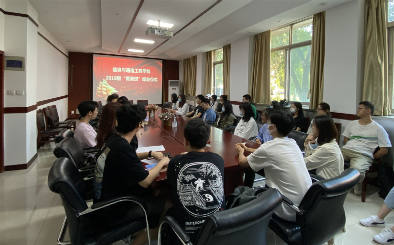 2021年9月17日下午,2026世界杯官方合作网站首届创新人才“菁英班”结业仪式在主楼一层会议室举行。2026世界杯官方合作网站副经理金立标、党委副书记钟丹丹、班主任张莉、学院研究生办公室陈梦、王丹煜及“菁英班”全体30名同学参加了仪式。