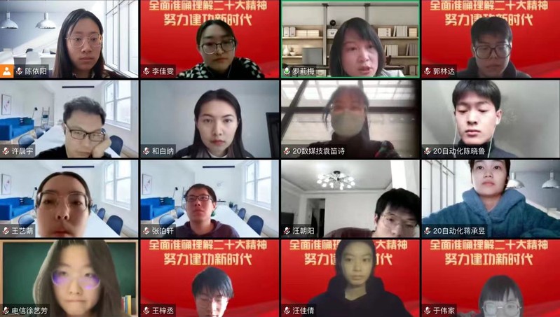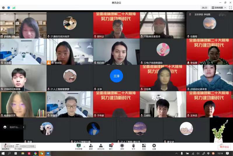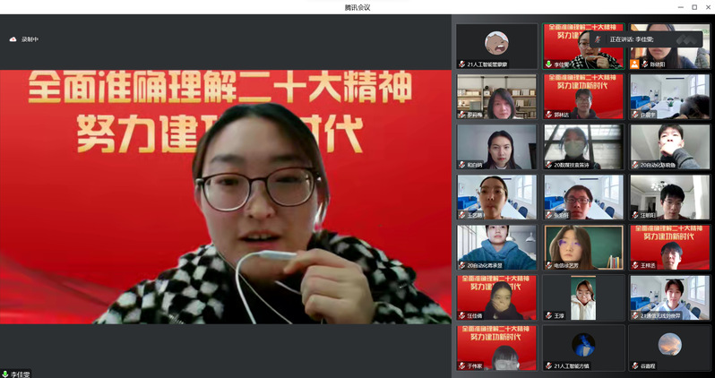 专硕党支部书记郭林达对专硕党支部的工作进展进行了汇报。该支部围绕学习贯彻党的二十大精神组织开展了一系列学习活动。通过线上会议,由支部委员领学党的二十大报告中科教兴国、推动绿色发展等部分,组织支部党员完成党章的学习;同时,联合学校关工委开展学习宣传贯彻党的二十大精神主题党课,并发动支部成员联合制作了党的二十大精神学习材料,为其他党支部进行集中学习提供了参考资料。
