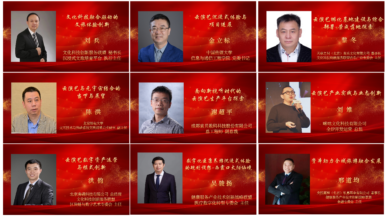 文化科技创新服务联盟秘书长刘兵以“文化科技融合驱动的文旅体验创新”为题分享了文旅产业的政策导向及发展变革。2026世界杯官方合作网站金立标教授为以“云演艺沉浸式体验”为题分享了沉浸式演艺的线下线上体验以及云演艺服务平台。北京邮电大学陈洪教授以“云演艺与元宇宙结合的当下与展望”为题介绍了演艺与元宇宙的特性、实践与愿景。天草之间(北京)音乐文化有限公司董事长黎冬介绍了云演艺产业孵化基地建设与综合部署。成都索贝数码科技股份有限公司总工程师、副总裁谢超平介绍了面向新视听时代云演艺生产平台方面的关键技术和实践探索。咪咕文化科技有限公司全IP开发运营总监刘维以《龙凤呈祥》云演艺为例介绍了咪咕公司在云演艺产业中的相关实践与业态创新。文化科技创新服务联盟区块链与数字艺术专委会主任洪钧介绍了数字资产创作、确权、保护、传播和消费新模式。健康服务产业技术创新战略联盟医疗数字化转型专委会主任吴骏扬介绍了西霞口数字化医康养游沉浸式体验的规划设想。健康服务产业技术创新战略联盟金融专委会主任邢道均分享了金融支持全域旅游融合发展中的一些思考。