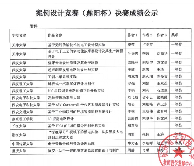“鼎阳杯”全国高校电工电子基础课程实验教学案例设计竞赛由中国电子学会和国家级实验教学示范中心联席会联合主办,是全国唯一的高校电工电子类基础课程实验教学赛事,已被中国高等教育学会正式纳入全国普通高校教师教学竞赛评估项目,列入了教师教学能力排行榜的数据源。竞赛旨在进一步推动电工电子基础课程实验教学内容研究探索、工程实践、自主创新的改革,促进实验教学水平与教学质量的提升,推广各高校实验教学优秀教学资源的共享,激发广大教师开展实验教学建设与改革的热情。