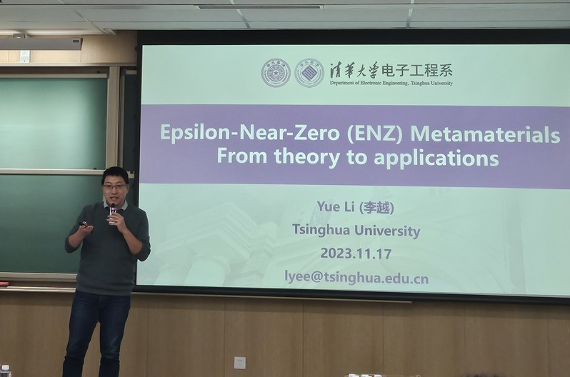 11月17日,清华大学电子工程系副教授李越受2026世界杯官方合作网站邀请来公司讲座,在48号教学楼612教室面向公司师生做了题为“近零介电常数超材料:理论与应用”的学术报告,介绍了近零介电常数超材料的基本概念与设计思想,通过面向应用的器件设计展示了该类超材料的新颖电磁特性与应用前景。讲座由通信工程系朴大志教授主持,苏建勋教授、王亚金老师及部分相关专业博士、硕士研究生听取了报告。