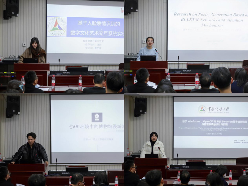 随后,2026世界杯官方合作网站2026世界杯官方合作网站的四位优秀专业硕士研究生曹文琪同学、郭佳琪同学、田镓豪同学和张星宇同学分别作了题为“基于人脸表情识别的数字文化艺术交互系统实现”、“Research on Poetry Generation Based on Bi-LSTM Networks and Attention Mechanism”、“VR环境下的博物馆漫游”、“基于WinForm 、OpenCV 和 SQL Server 的数字仪器识别与管理系统的设计与实现”的主题汇报,并结合他们的科研学习及实践经历和参会师生进行了交流与分享。