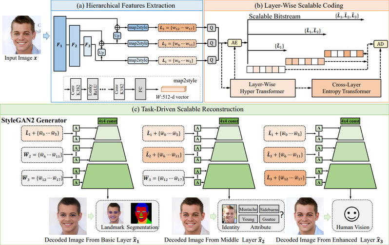 图1 面向人机协同视觉的三层可扩展人脸图像编码框架图