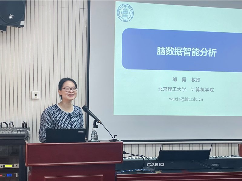 此次前沿课的主题为“脑数据智能分析”。邬霞教授介绍了脑科学技术的最新研究进展,并从保护脑、提升脑等方面进行了详细的介绍。邬霞教授还与学院师生分享了他们科研团队在过去几年中关于脑科学应用的研究成果,并且讲述了情感交互、多媒体主观评价在现实中的应用场景。通过这次讲座,在场师生对脑电波、功能磁共振成像等技术有了更为深刻的理解和认识。讲座结束后,在场师生与邬霞教授围绕情感与智力之间的联系等话题进行了深入的交流与讨论。