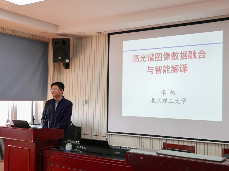 此次前沿课的主题为“高光谱图像数据融合与智能解译”。李伟教授介绍了高光谱图像处理的最新研究进展,并从多源遥感影像配准、多源融合质量提升、多源协同分类解译等方面进行了详细的介绍。李伟教授还与学院师生分享了他们科研团队在过去几年中关于大场景遥感目标提取的研究成果,并且讲述了高光谱图像在现实中的应用场景。通过这次讲座,在场师生对多源遥感信息提取等技术有了更为深刻的理解和认识。讲座结束后,在场师生与李伟教授围绕高光谱图像在医学诊断领域的应用等话题进行了深入的交流与讨论。