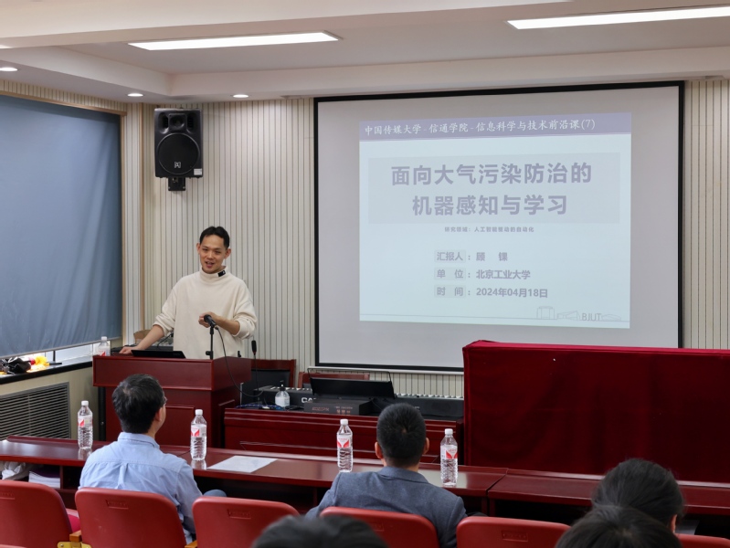 此次前沿课的主题为“面向空气污染防治的机器感知与学习”。顾锞教授介绍了石化企业废气排放智能监控系统,并从烟粒识别预测及其应用等方面进行了详细的介绍。顾锞教授还与学院师生分享了科研团队在过去几年中在大气污染防治领域的研究成果,并且讲述了研发智能监控技术和低廉监控系统对实现废气洁净燃烧的重要意义。通过这次讲座,在场师生对机器感知、智能监控等技术有了更为深刻的理解和认识。