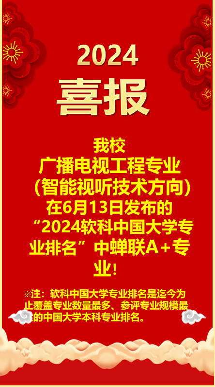 喜报|公司广播电视工程专业(智能视听技术方向)在2024软科中国大学专业排名中全国排名第二(A+评级)