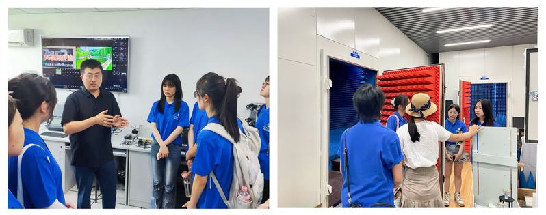 7月6日下午,学院为营员们准备了丰富的实验室参观活动。营员们亲身体验了学院在AI驱动下的科研创新成果,先后参观了未来通信与智能视音频研究中心、智能视音频与超高清技术研究中心、视听技术与智能控制系统文化和旅游部重点实验、媒介音视频教育部重点实验室、广播电视智能化教育部工程研究中心、电磁微波暗室、声学实验室以及5G创新应用实验室。通过近距离的观察与交流,营员们对学院的科研实力、教学设施及师生风貌有了更加全面和深入的了解。