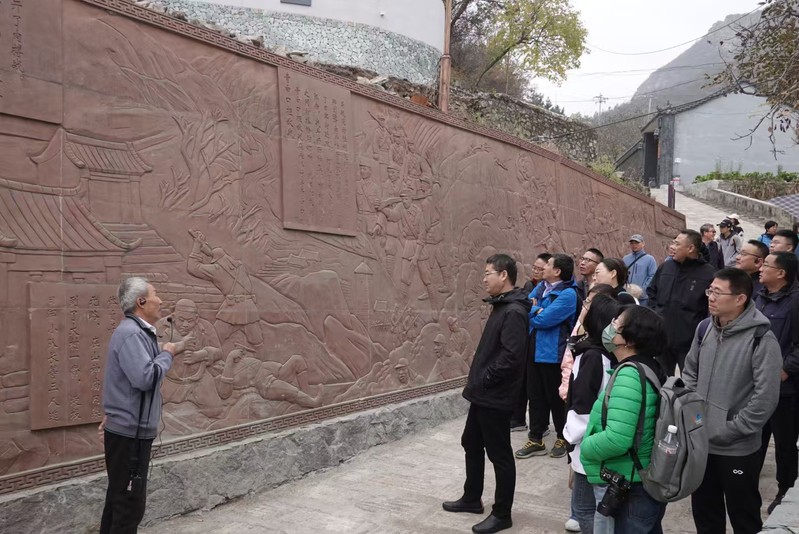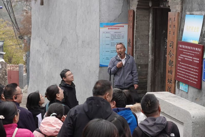 第二个环节党员教师们前往斋堂镇抗日模范村——爨底下村开展学习实践。抗日战争时期,宛平县一区抗日民主政府迁至爨底下村。在1939年反“扫荡”作战中,爨底下村中的民兵组织表现英勇。抗日战争中,爨底下村有70余名青壮年参加了八路军,成为抗日模范村。党员教师们通过重访抗战遗址,重温抗战烽火记忆,沉浸式体悟抗战英雄精神,进一步激发爱党、爱国、爱校热情,将红色精神资源转化为落实立德树人根本任务的强大动力。