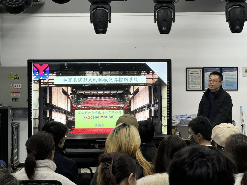 通过侯鹏强总工程师的精彩讲解,在场的师生们对舞台设备控制技术及其应用有了更加深入的理解和认识。讲座结束后,师生们与侯鹏强总工程师进行了热烈的交流讨论,现场气氛活跃。