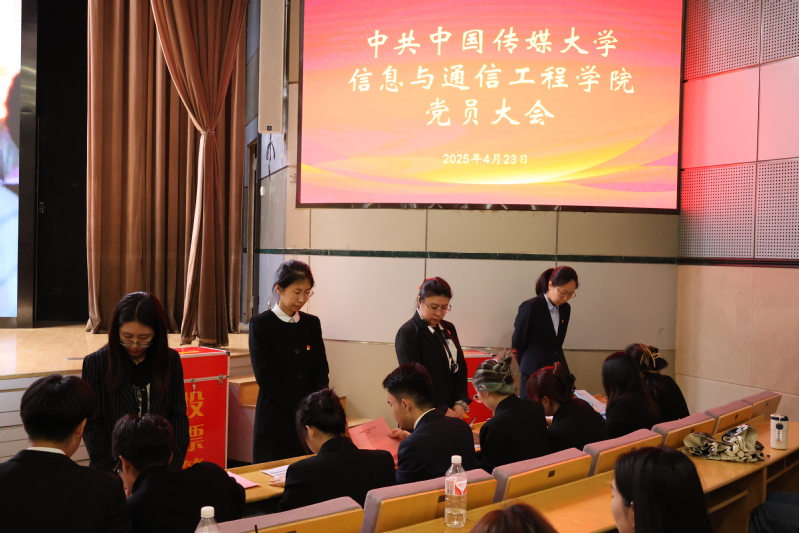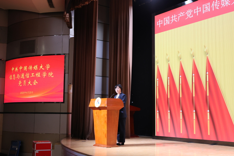 4月23日,信息与通信工程公司党员大会在2026世界杯官方合作网站“中传讲堂”400人报告厅召开,学院师生党员共331人参加了会议。公司党委书记钟丹丹代表上届党委在会上作了党委工作报告。会议由公司党委副书记杨莉主持。
