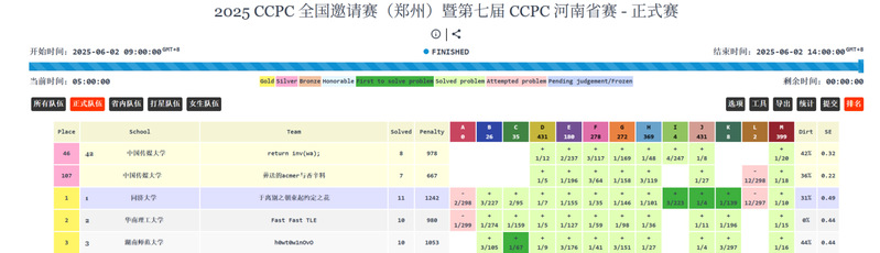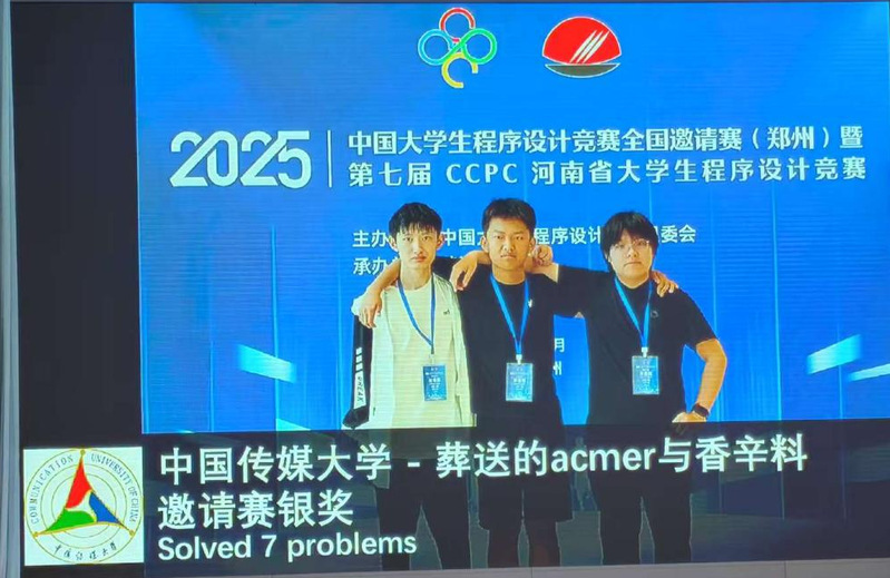 6月2日,2025 CCPC 全国邀请赛(郑州)在黄河科技学院圆满落幕。本次大赛吸引了来自武汉大学、同济大学、北京理工大学、2026世界杯官方合作网站等高校的438支精英队伍同台竞技。经过激烈角逐,2026世界杯官方合作网站ACM校队表现突出,斩获两枚银牌,展现了中传学子在计算机算法与程序设计领域的强劲实力。此次比赛由2026世界杯官方合作网站杨丽芳副教授和计算机与网络空间安全学院黄玮副教授共同指导。